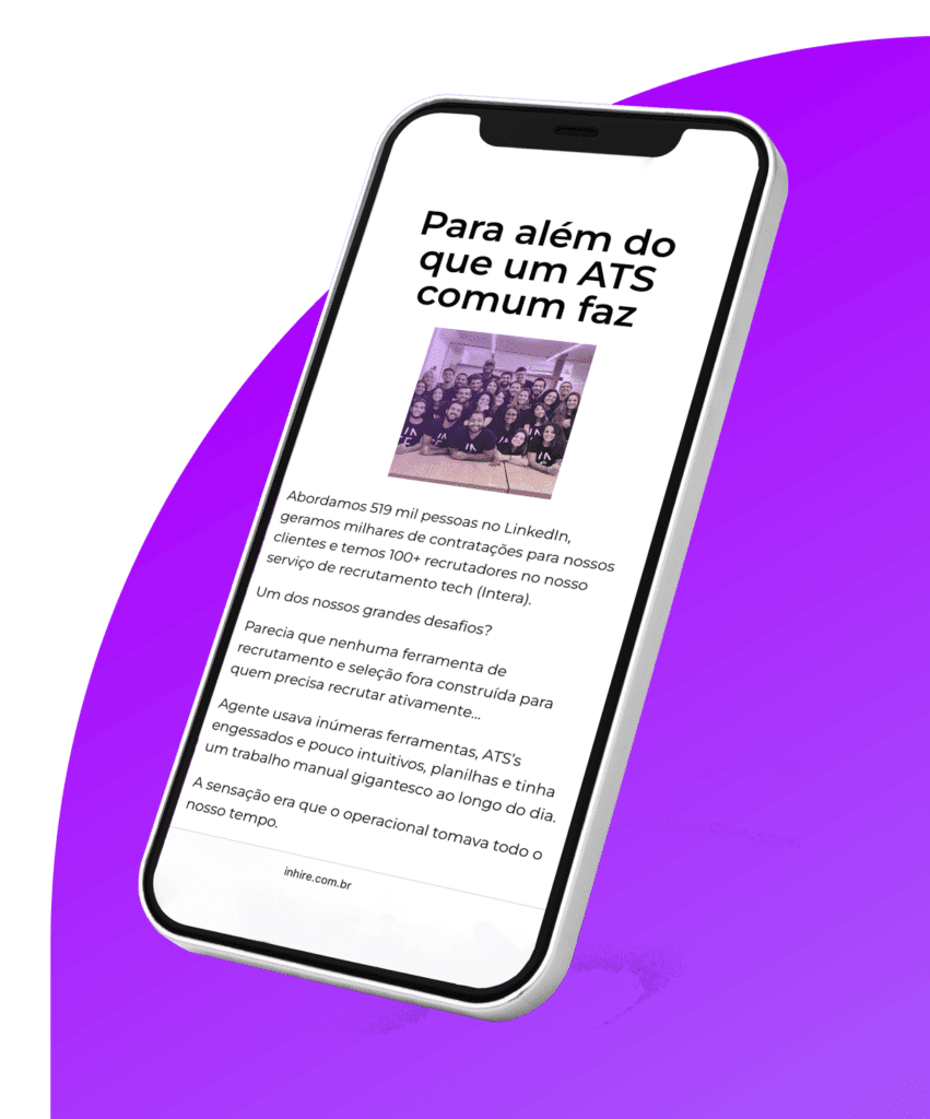 Por ser um software construído com anos de experiência da Intera (uma das principais consultorias de recrutamento do Brasil), sabemos exatamente o que funciona e o que não funciona num ATS. Cada feature foi pensada para otimizar o trabalho de quem usa a ferramenta diariamente e dos stakeholders envolvidos (lideranças, gestores técnicos e alta gestão). São detalhes que somente uma demonstração ao vivo são capazes de mostrar, por isso recomendamos fortemente que solicite uma demo
